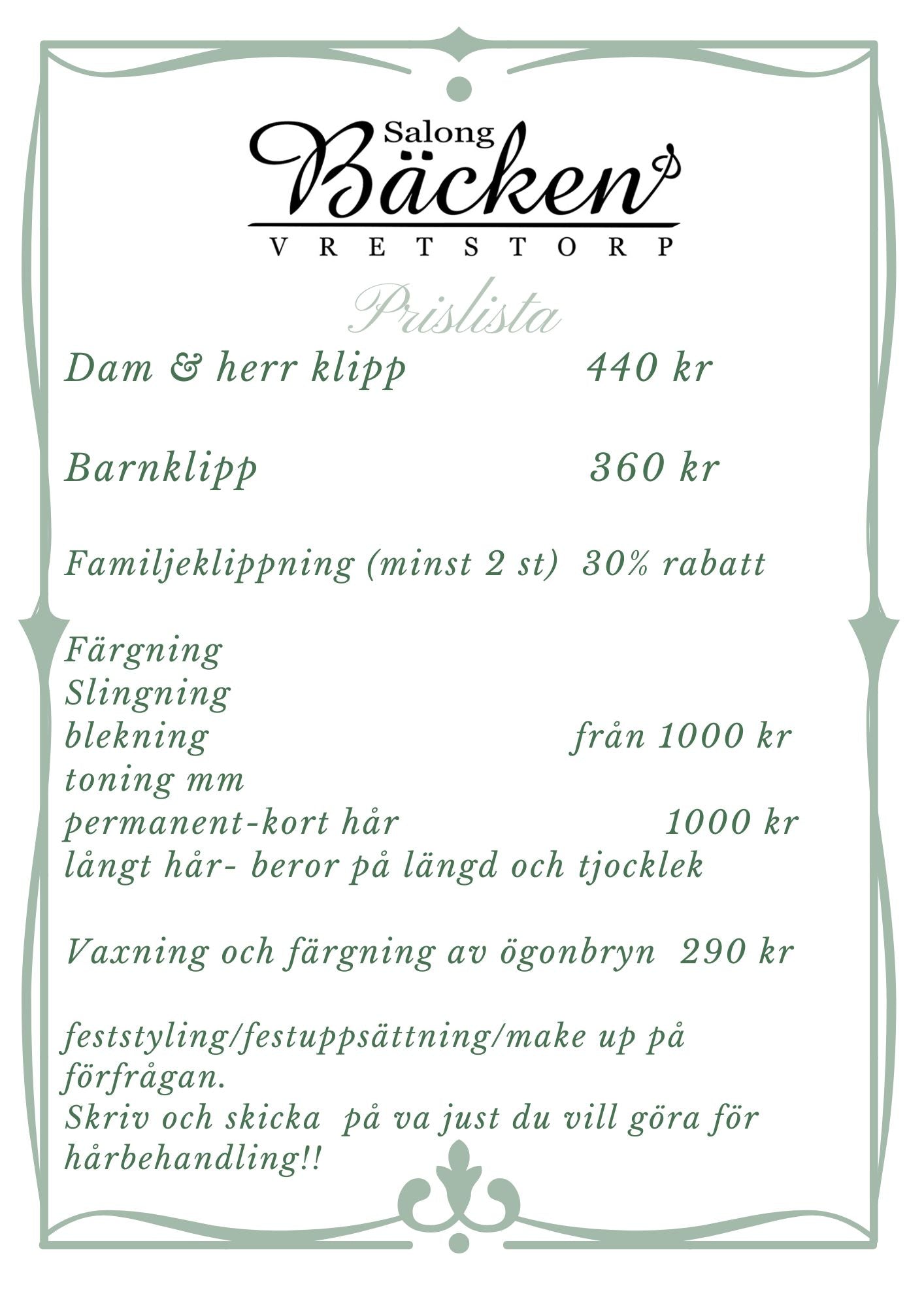 I salong Bäcken som ligger på gården utanför Vretstorp på närkeslätten kan du komma för att ta hand om ditt hår! Klippa, färga eller permanenta tex. Hit kommer gärna hela familjer för att få sina hår fixade! Perfekt för barnen som kan springa ut på gården och leka medans mor eller far blir omhändertagna!