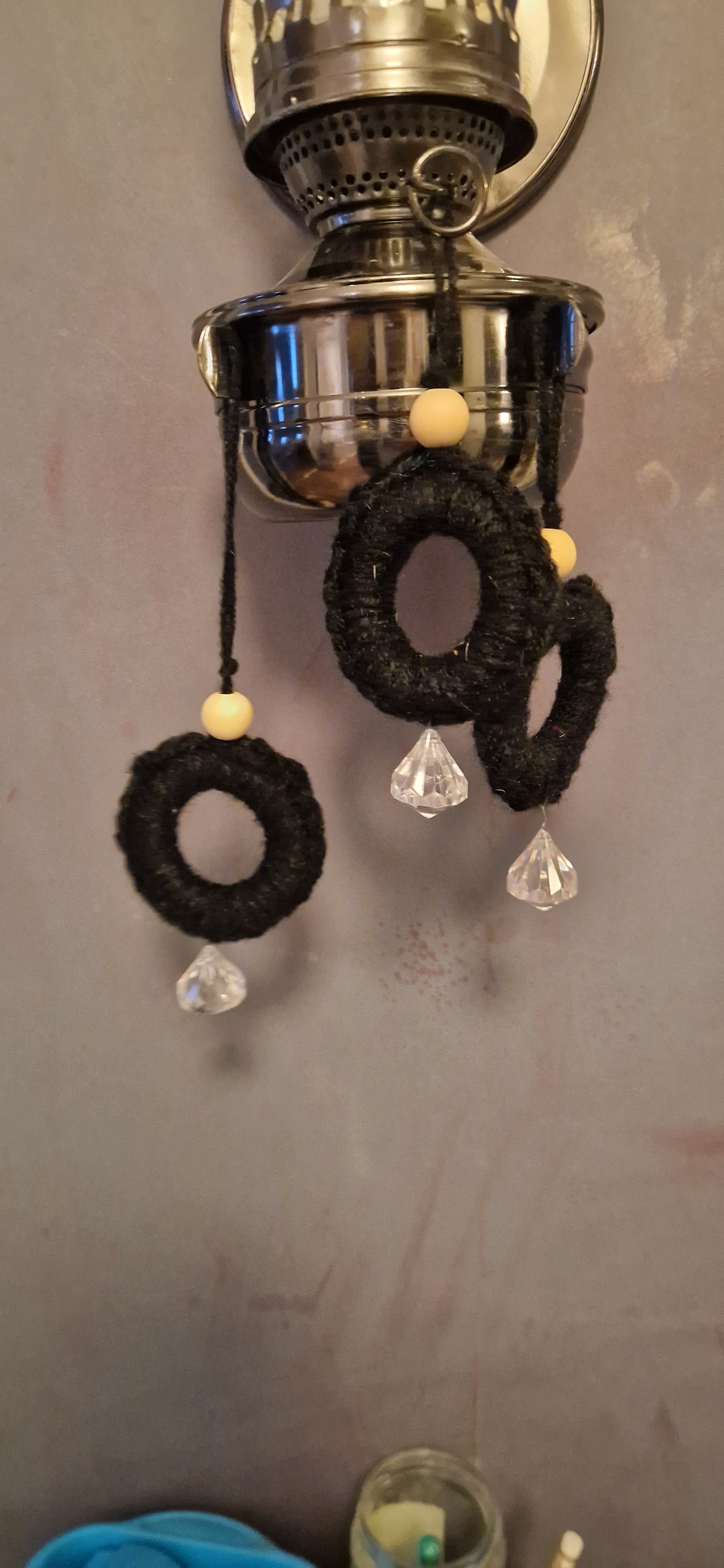 Ge dina lampor, skåp eller fönster en exklusiv och handgjord touch med dessa dekorativa hängprydnader! De vackra, garnklädda ringarna i djup röd färg skapar en varm och lyxig känsla, medan de gnistrande kristalldropparna ger ett elegant ljusspel. Perfekta som juldekoration, året-runt-detalj eller som en stilfull accent i hemmet.